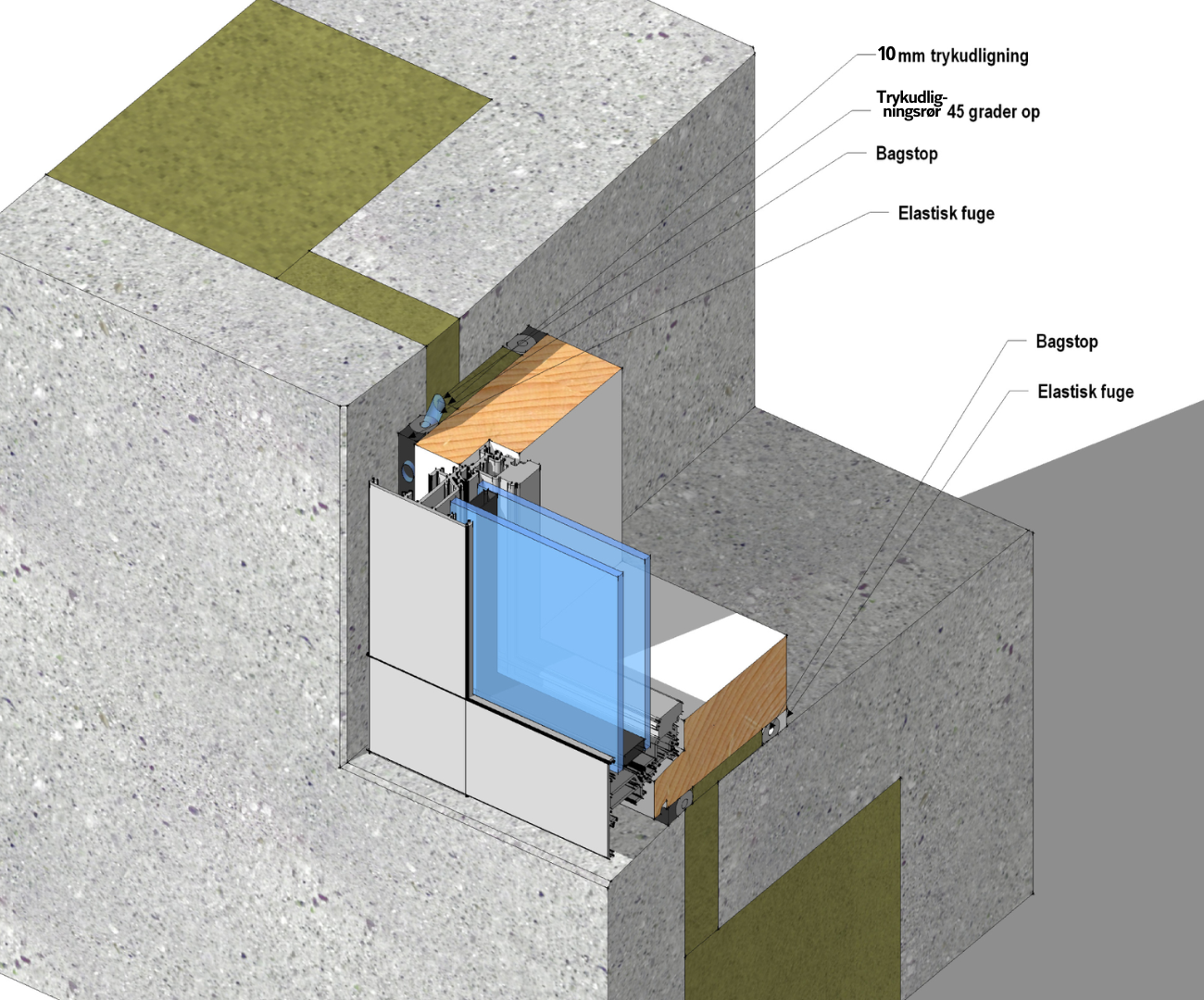 Der skal anvendes trykudligning eller diffusionsåben fugebånd ved ikke-kapillarsugende materialer.