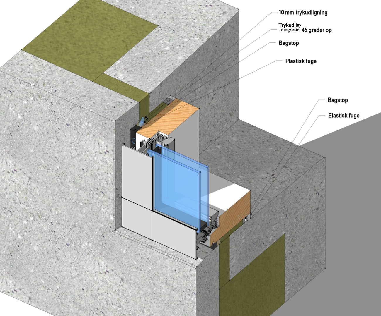 - Udvendig regnskærm (fugemasse)